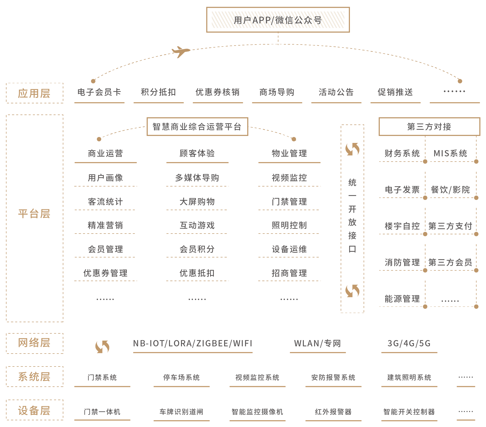 智慧商業(yè)解決方案是(shì)針對(duì)目前商業(yè)綜合體(tǐ)面臨的(de)痛點,利用(yòng)物(wù)聯網思維,通(tōng)過智能(néng)化(huà×)設施的(de)投入,構建一(yī)個(gè)強大(dà)網絡架構,實現(xiàn)綜合體(tǐ)內(nèi)的δ(de)所有(yǒu)業(yè)務承載,涵蓋商業(yè)項目的(de)招商、運營、營銷、顧客體(tǐ)驗及安全管理(lǐ)等,從(cóng)而助力傳統商業(yè)轉型₽升級,實現(xiàn)商業(yè)資産保值、增值。